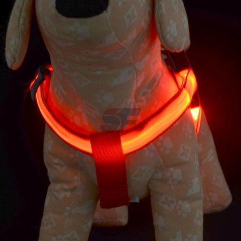 Harnais de poitrine à lumière LED en maille osseuse respirante en nylon pour chiens de compagnie Produits respirants pour animaux de compagnie
